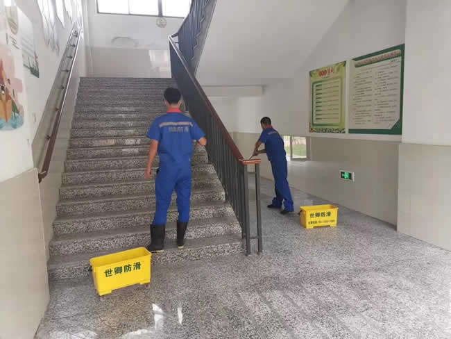 浙江省寧波市慈溪市龍山中學(xué)地面防滑處理順利完成。