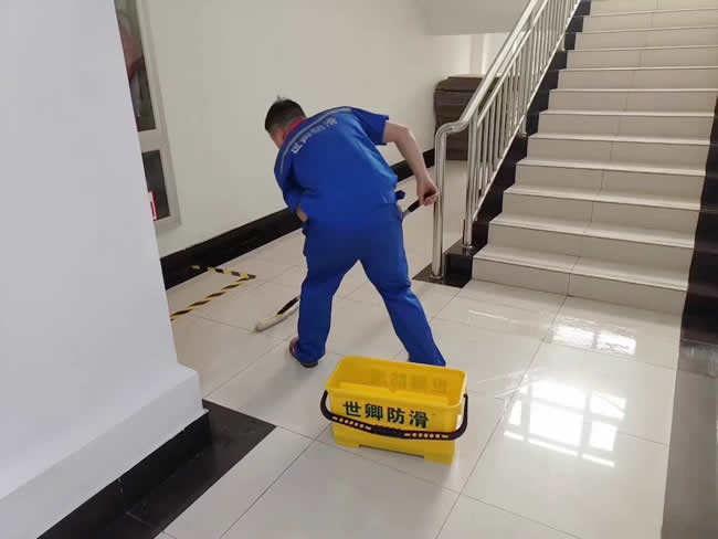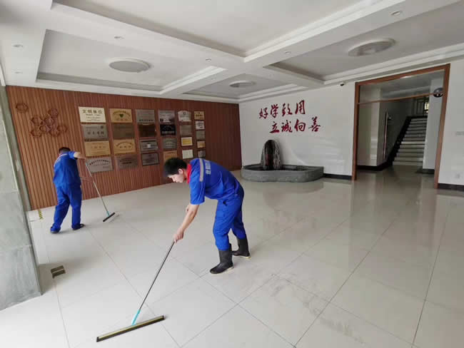 2019年7月22日【上海財經大學附屬中學】地面防滑處理完工,趁著暑假放假,使勁干