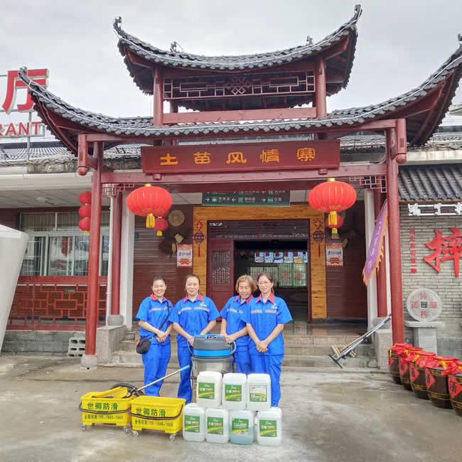 湖北恩施利川市白羊塘服務(wù)區(qū)土苗風(fēng)情寨餐廳地面防滑順利完工。防滑熱線13317269258