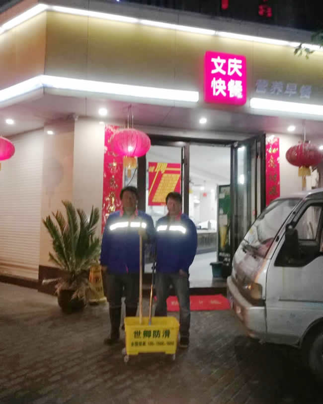 2018-4-17世卿防滑-浙江臺州團(tuán)隊(duì)完成了臺州臨海市文慶快餐地面防滑處理,非常感謝文慶快餐老板娘對世卿防滑的支持,老板娘很逗,一塊一塊瓷磚的用腳去試,一邊試一邊說,真牛,真的不滑了。世卿是什么?就是給大家?guī)硇凶甙踩摹?/p>