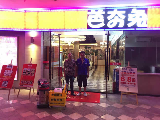 2019年6月18日晚順利完成四川達(dá)州市《芭夯兔》餐廳地面防滑工程,郭總經(jīng)過(guò)一個(gè)半月的考察最終選擇世卿防滑,給我一個(gè)機(jī)會(huì),還你一個(gè)驚喜!祝宣漢店生意興隆。