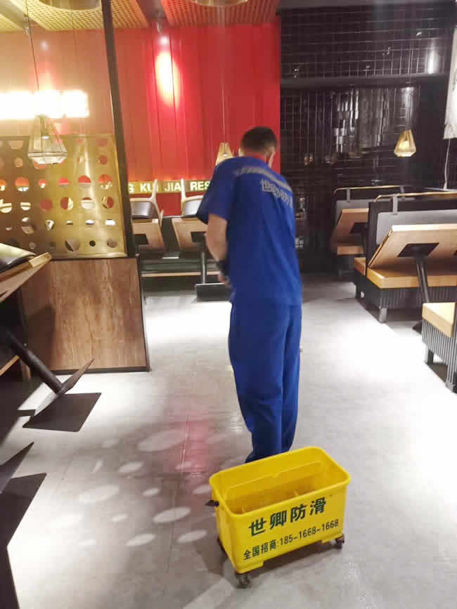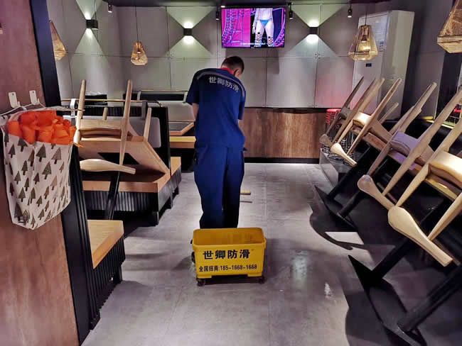 上海市青浦區(qū)《紅盔甲小龍蝦餐廳》地面防滑處理