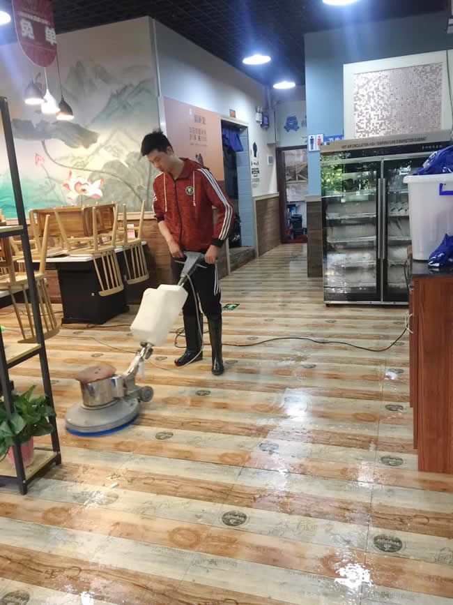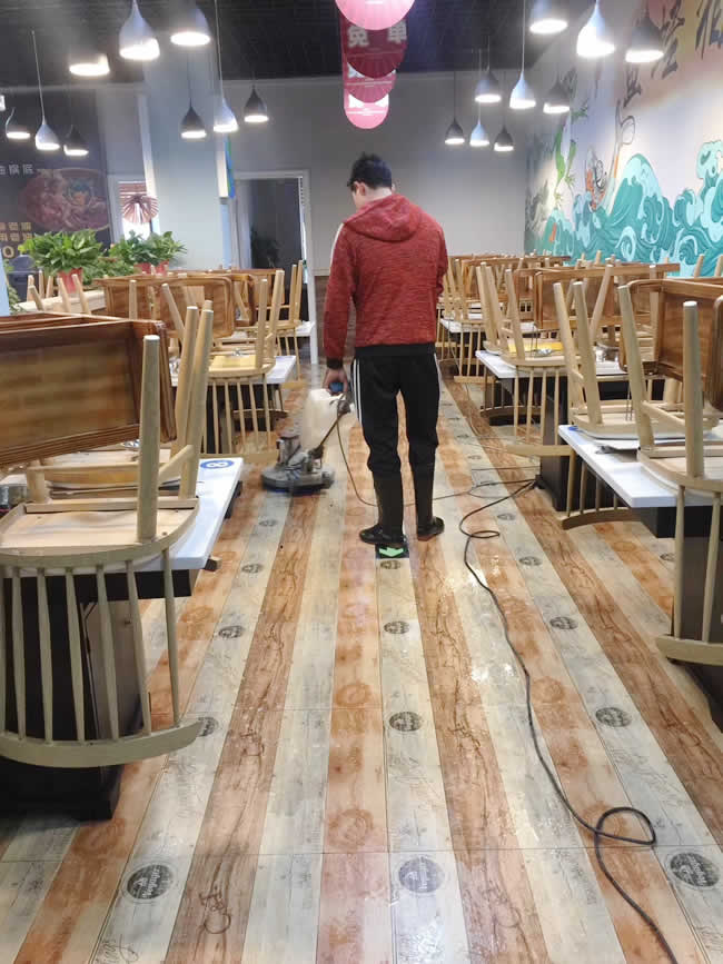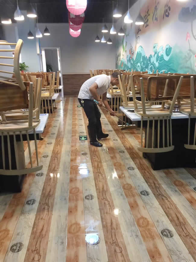 貴州黔南都勻市平橋社區(qū)【美蛙魚頭火鍋】餐廳地面防滑施工