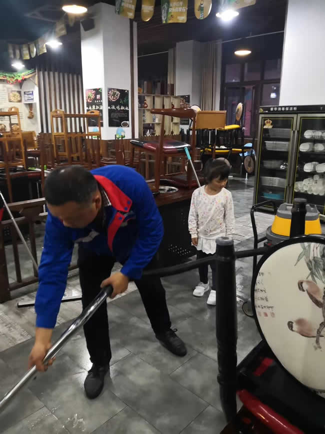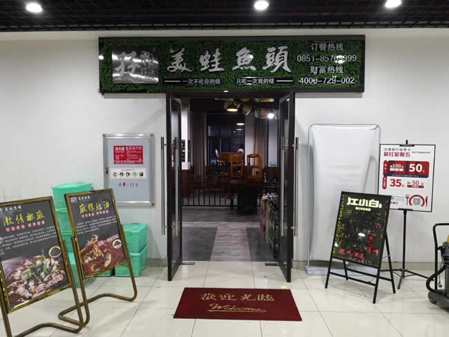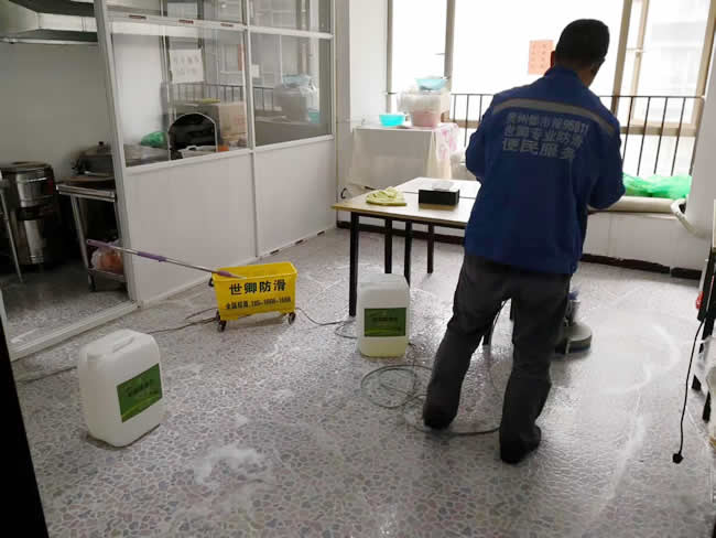 貴陽市小河區(qū)萬達(dá)廣場的孖漁美蛙魚頭餐廳地面地面防滑施工