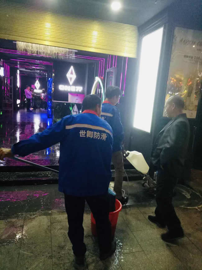 4月30日,世卿防滑-【遵義團(tuán)隊(duì)】4月30日下午,貴州遵義市匯川區(qū)澳門路【One77酒吧】,為顧客提供安全休閑場所,誠邀我公司(貴州世卿防滑工程有限公司http://m.guizhousqfh.com/)對(duì)其大廳、主通道和廁所等地面進(jìn)行防滑處理,效果滿意,得到老板及顧客一致認(rèn)可。