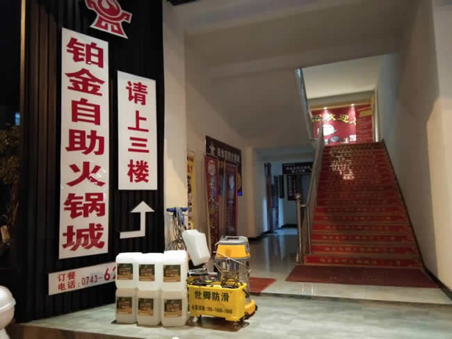 世卿防滑恩施團隊️月22日對湘西龍山縣【鉑金自助火鍋】大廳、包間、廚房、衛(wèi)生間完成地面防滑防護處理,為店內(nèi)員工顧客解決地面遇水遇油的濕滑問題,建立安全溫馨的用餐環(huán)境。大愛企業(yè),用心服務(wù),用愛鑄就。