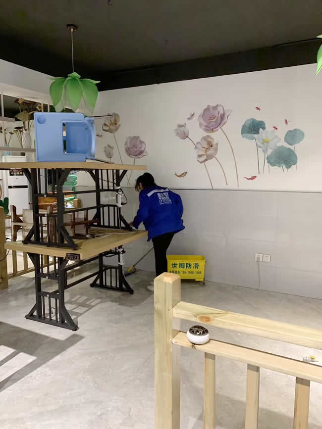 重慶世卿團(tuán)隊(duì)于2019年4月18日完成重慶市萬(wàn)州區(qū)民心佳園社區(qū)【藕然間】餐廳地面防滑處理!