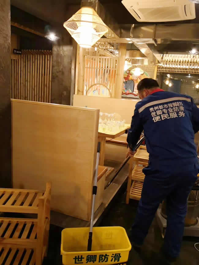 世卿防滑〈貴陽團(tuán)隊(duì)〉2019年3月13日完成了位于貴陽市云巖區(qū)鹿沖關(guān)路【黃南武陽郎辣子雞店】餐廳及廁所進(jìn)行了地面防滑施工,老板經(jīng)過各種防滑材料的對(duì)比,最后確認(rèn)了世卿防滑,感謝老板的信任,再也不用為顧客的滑倒擔(dān)心了,世卿防滑,防滑世家。