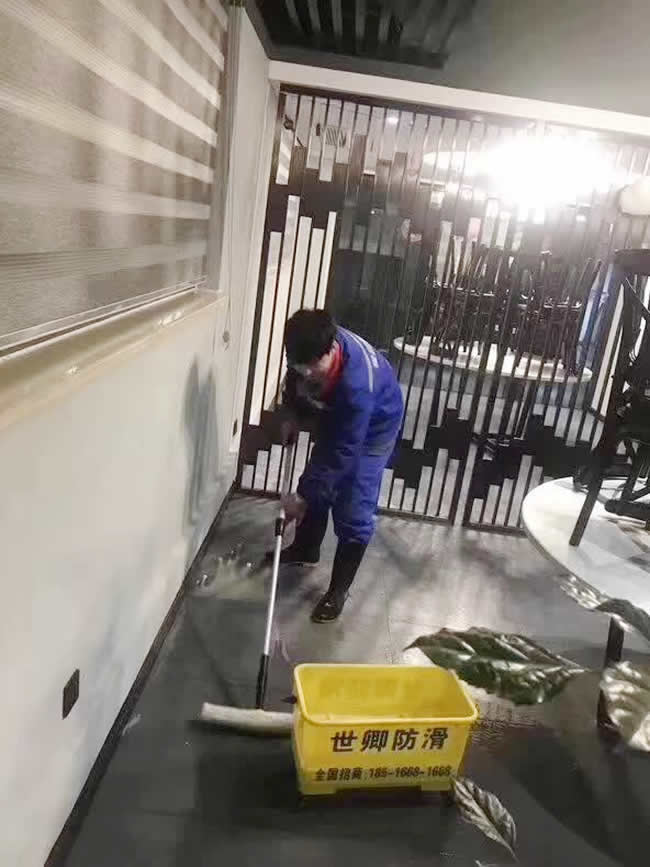 2019年2月16號海寧市阿龍酒煲對整個餐廳區(qū)域進(jìn)行了地面防滑處理 遇水遇油再也不用擔(dān)心會滑倒了 祝老板生意興隆 新的一年發(fā)大財。