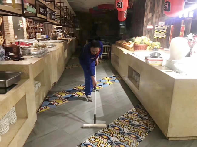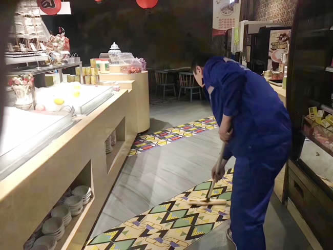 3.13號(hào)江西省餐飲協(xié)會(huì)副會(huì)長(zhǎng)單位:亞馬遜(中國(guó))環(huán)球美食百匯南昌萬達(dá)店,打樣后效果非常滿意,直接施工,為了客人的安全,防滑處理已完成。