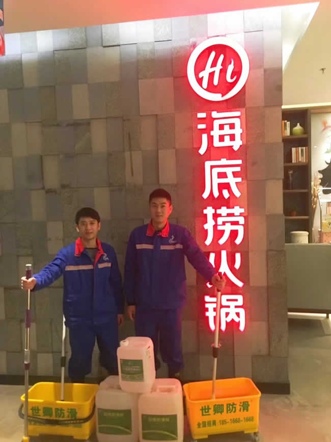 中國(guó)餐飲龍頭企業(yè)海底撈西安經(jīng)開店,經(jīng)過(guò)世卿專業(yè)施工團(tuán)隊(duì)的防滑處理,于2017.12.31順利完工,新的一年,將為客戶送去全新的安全保障,2018 我們來(lái)了。