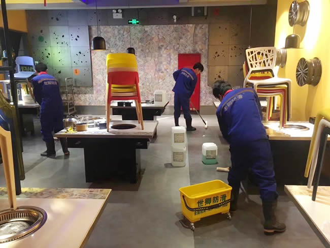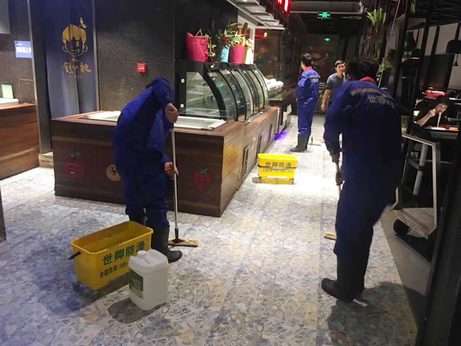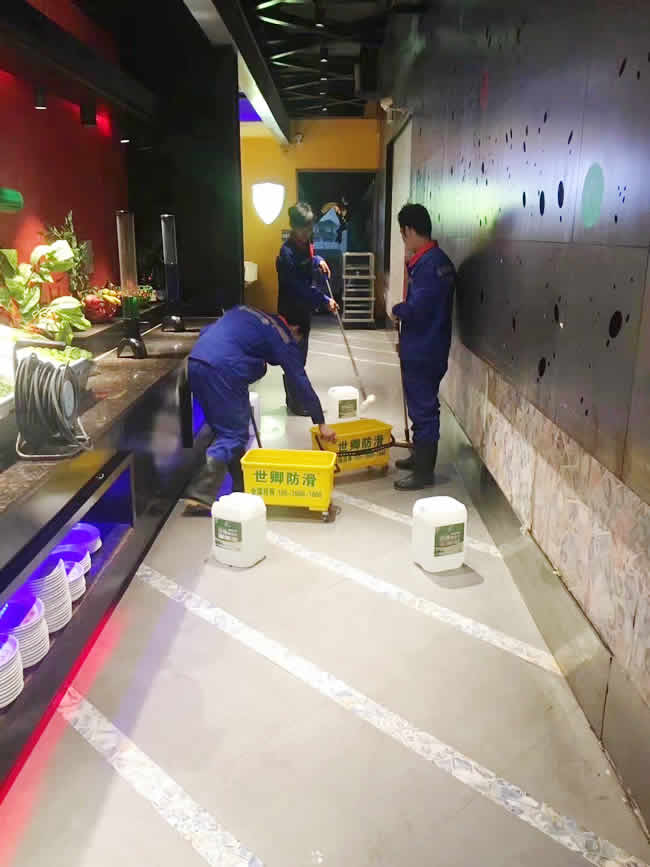 錢小奴自助餐昆山市九方城店地面防滑處理于2017年11月18日夜完工。