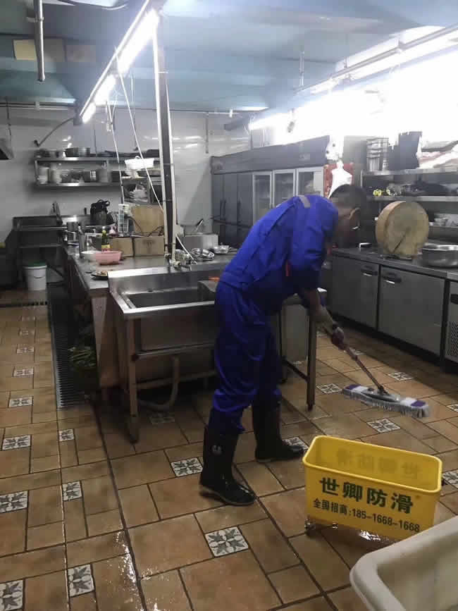 即百年石鍋飯之后,東北吉林市百年青葉餐飲有限公司另一餐廳青葉烤魚于2017.10.8日晚后廚地面防滑施工結(jié)束!老板說了,后廚做完防滑后,效果杠杠的,員工可以在地面上跑了,上菜速度更快了,過幾天其他餐廳的后廚前廳都要做防滑處理,世卿防滑,用品質(zhì)說話!