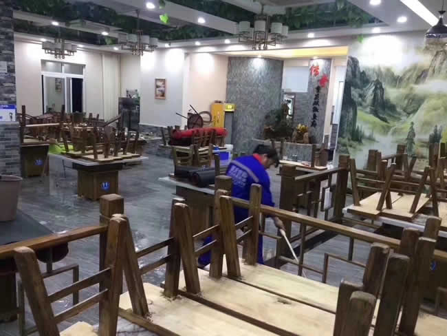吉林解放大路百年石鍋飯萬達店10.7日夜里防滑施工結(jié)束!以后后廚人員再也不用為地面濕滑擔驚受怕了! 世卿各地代理商開始拼業(yè)績了