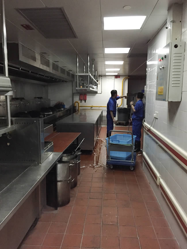 祝賀世卿防滑防護(hù)科技有限公司于2015年6月完成對(duì)溫州喜來登酒店的地面防滑施工工程。 上海世卿防滑防護(hù)科技有限公司專業(yè)研發(fā),生產(chǎn),銷售地面防滑材料,并承接大面積防滑工程,專業(yè)施工團(tuán)隊(duì),為您上門服務(wù)!我們堅(jiān)持秉承創(chuàng)造綠色環(huán)保、營(yíng)造安全健康,創(chuàng)新發(fā)展、不斷超越的經(jīng)營(yíng)理念以及客戶至上的核心價(jià)值觀,一直在努力做對(duì)社會(huì)有意義的事! 溫州喜來登酒店后廚地面材質(zhì)為釉面磚,最常見的這種材質(zhì)的地面一旦遇水非常濕滑,容易造成行人行走滑倒,存在極大的安全隱患,降低了工作人員的工作效率,經(jīng)過我司的防滑處理,保持著原有的地面原貌,也解決了客戶的地面濕滑問題,得到了溫州喜來登酒店的認(rèn)可和極高評(píng)價(jià)。我司專業(yè)承接地面防滑處理、瓷磚防滑處理、地磚防滑和大理石防滑處理工程服務(wù),以及銷售地面防滑產(chǎn)品——世卿防滑劑。歡迎致電咨詢:021-20981810。廚房地面防滑處理完成