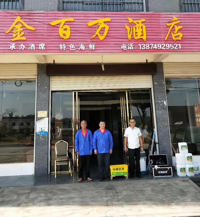 湖南瀏陽(yáng)市【金百萬(wàn)酒店】客用區(qū)域地面及廚房地面防滑處理