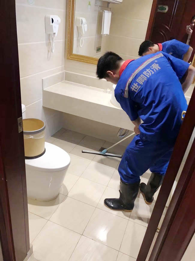 2018.5.21上海青浦維也納酒店洗手間施工完成。世卿防滑,中國防滑行業(yè)領(lǐng)軍品牌。防滑項(xiàng)目招商、專業(yè)培訓(xùn)、工程案例分享,地面防滑施工技術(shù)永遠(yuǎn)走在行業(yè)前沿,瓷磚防滑劑、防滑涂料生產(chǎn)制造商。
