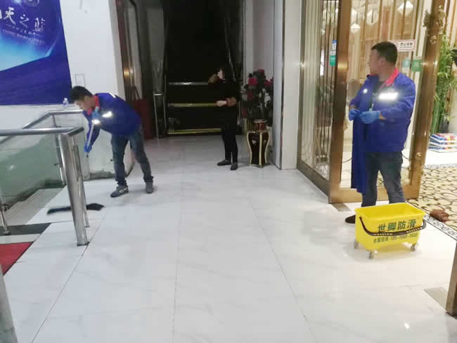 世卿防滑湖北襄陽~關(guān)愛行走安全,預(yù)防意外滑倒,感謝老河口凱富特大酒店陳總的信任,兩店連續(xù)施工。