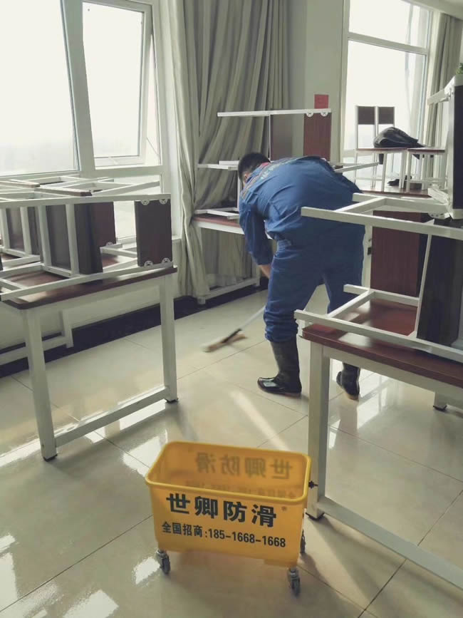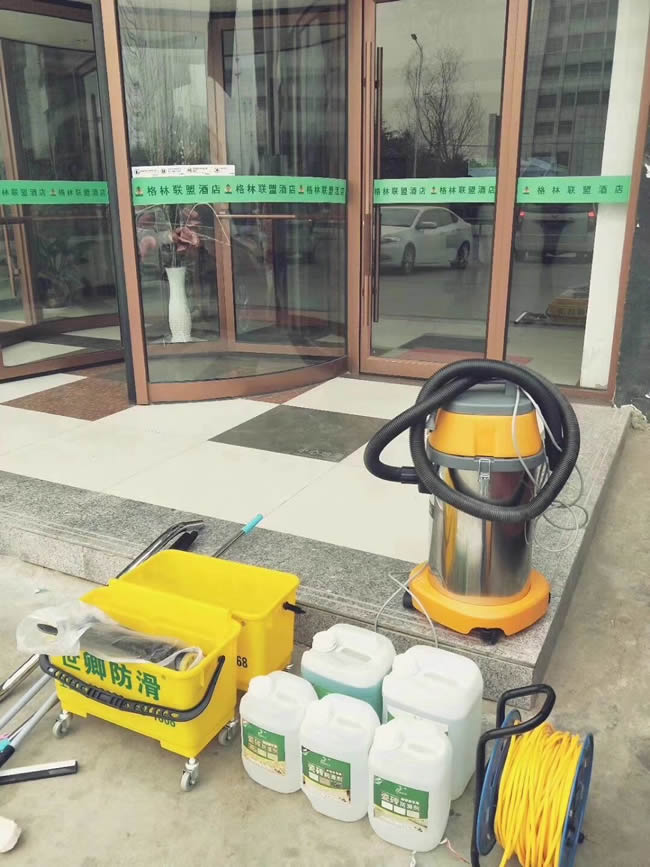 世卿防滑山東菏澤團(tuán)隊(duì)-2018年2月9日為山東菏澤市格林聯(lián)盟酒店進(jìn)行地面防滑處理。