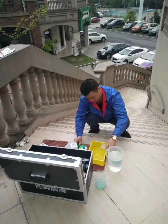 湖南瀏陽市【巨統(tǒng)門窗公司】老板邀請湖南世卿瀏陽團隊對樓梯,過道進行防滑打樣,效果棒棒滴,立馬安排下午施工。