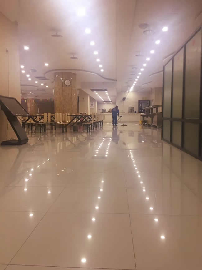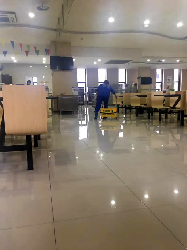 2018年10月21日重慶世卿團(tuán)隊(duì)順利完成重慶市國(guó)土資源和房屋勘測(cè)規(guī)劃院?jiǎn)T工食堂地面防滑施工。