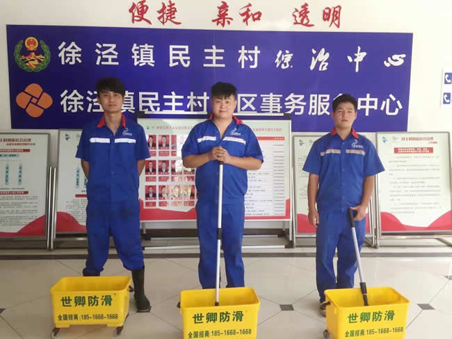 世卿防滑【總部團(tuán)隊】為上海市青浦區(qū)徐涇鎮(zhèn)民主村社區(qū)事務(wù)服務(wù)中心進(jìn)行地面防滑,越來越多的政府職能部門選擇了世卿防滑。