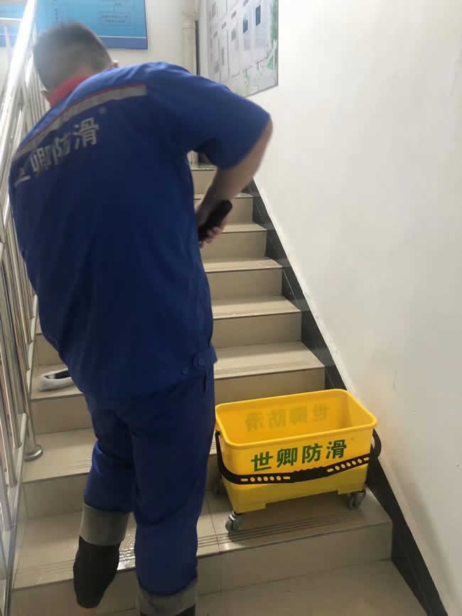 世卿防滑免費(fèi)為上海青浦區(qū)東盛居委會(huì)樓梯臺(tái)階進(jìn)行地面防滑處理。
