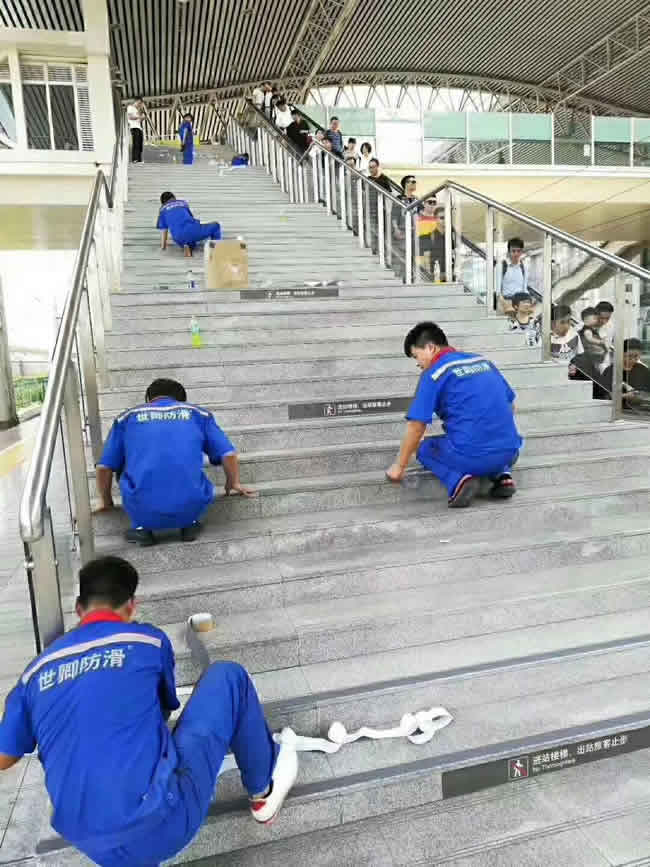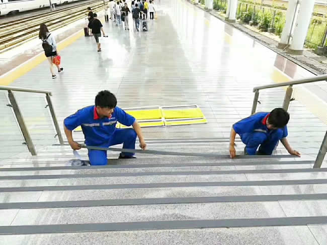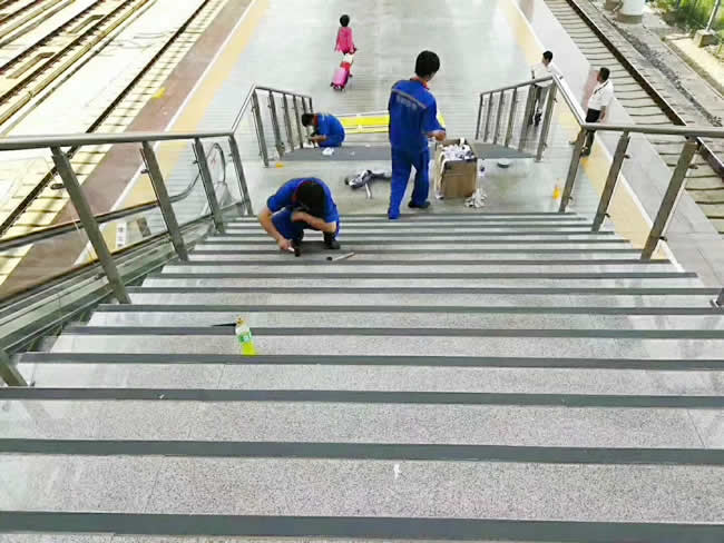 江蘇鎮(zhèn)江市高鐵站樓梯防滑處理完工