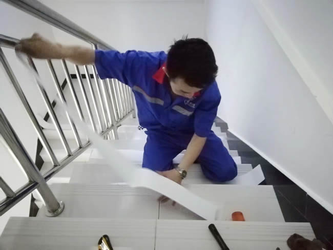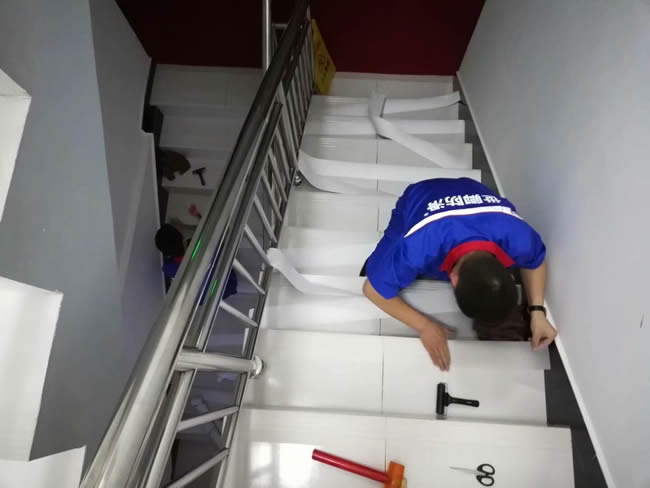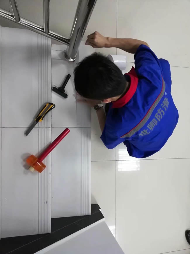 上海市浦東新區(qū)人民檢察院內(nèi)部樓梯防滑處理于2018.5.23完工,透明防滑膠帶,環(huán)保,高效防滑,無色透明。