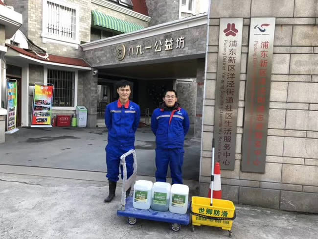 上海世卿團(tuán)隊(duì)2018年1月9日一天完工2個(gè)工程:上海浦東陸家嘴金融區(qū)東園小街地面防滑處理完工。上海市浦東新區(qū)洋涇街道社區(qū)生活服務(wù)中心地面防滑處理完工,完美收工,一天時(shí)間,貫穿上海,世卿防滑。