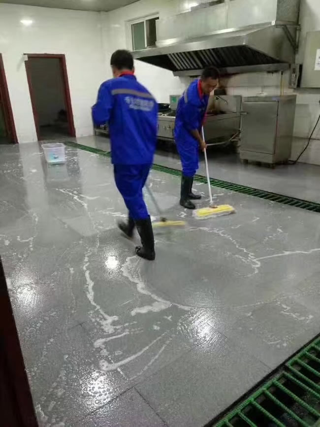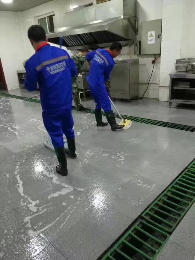 廣元武警四中隊廚房地面防滑處理,司務(wù)長現(xiàn)場監(jiān)督,就驚人的防滑技術(shù)與效果驚嘆不己。