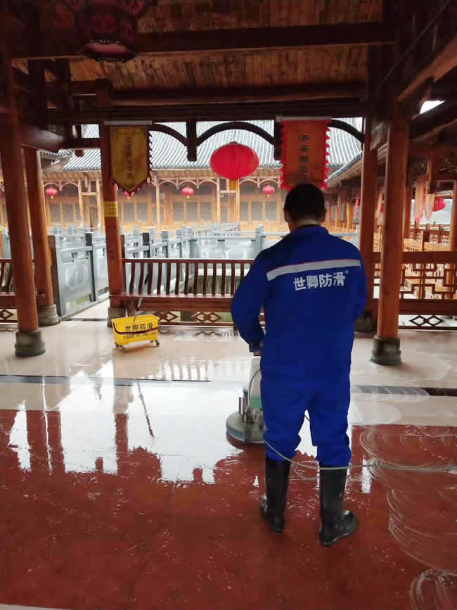 世卿防滑(黃岡團隊)凌晨冒著大雨己展開湖北黃岡市黃州區(qū)齊安湖生態(tài)農莊3000平米場地施工。酒店行業(yè)明星大企業(yè)選擇防滑大品牌。帶給客戶的是一份安全一份責任!