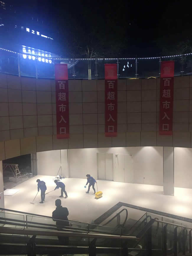 世卿防滑于近期通過了國家權威機構檢測,并獲得業(yè)內唯一國家《綠色建筑選用產品證書》。至此,在甲方嚴格且多方位的考察中,從其他眾多防滑品牌中重慶世卿得到了絕對認可。2018年12月28日凌晨,應甲方開業(yè)需求,重慶世卿團隊順利完成永川重百超市公共區(qū)域的防滑施工,為即將開業(yè),摩肩接踵而至的消費者提供了地面行走的安全保障!