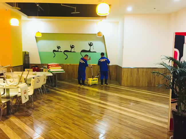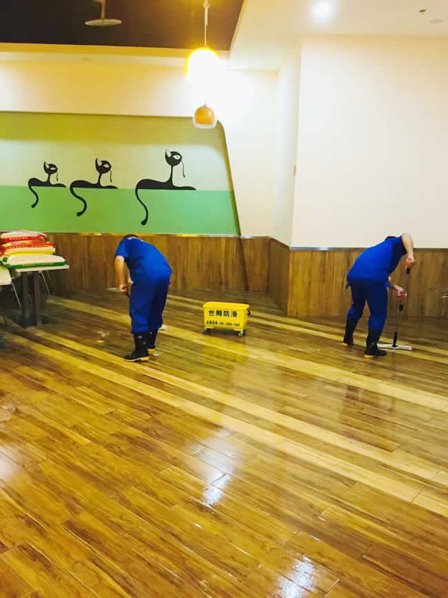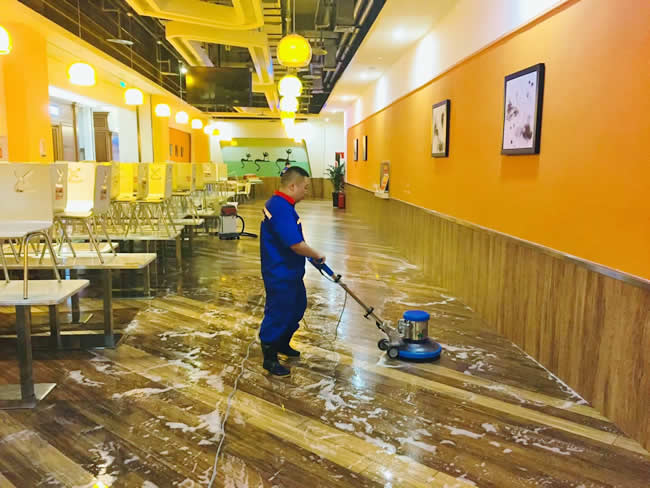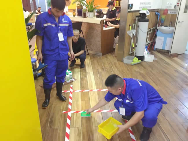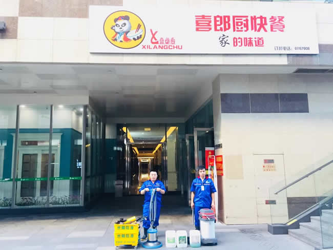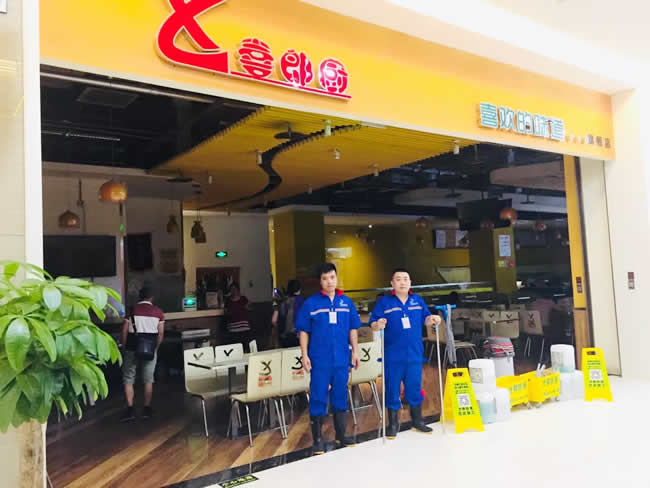 世卿防滑【成都團隊】西南最大的建材市場富森美家居北門店里的獨家餐廳喜郎廚快餐防滑處理工程正在進行中。