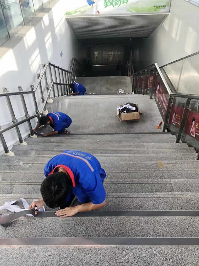 上海鐵路局旗下高鐵站丹陽站安全階梯地面防滑膠帶工程