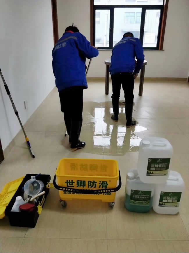 世卿防滑團(tuán)隊(duì)——于2017-12-28對(duì)紹興市一處關(guān)愛(ài)年邁父母居家公寓的客廳廚房及衛(wèi)生間等做了全面防滑處理!不改變地面原貌,遇水遇油越防滑!地面濕滑不容忽視,世卿防滑幫您解憂(yōu)!