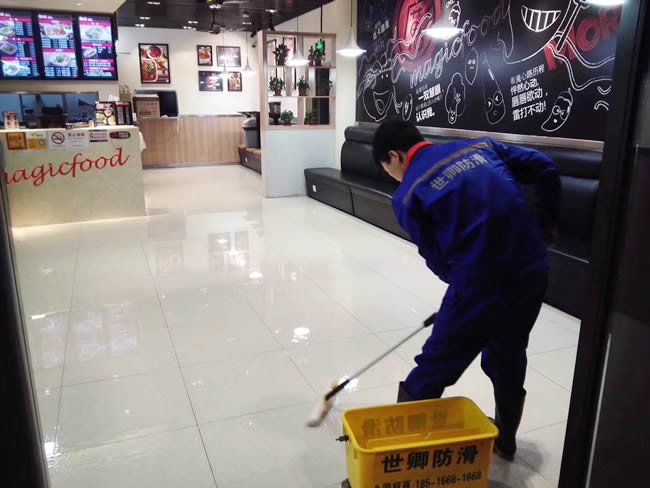 上海魔粉家浦江誠實廣場店地面防滑處理于2017年11月8日完工。