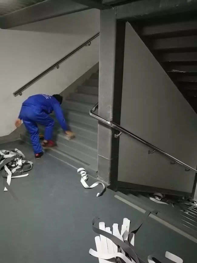 上海大自鳴鐘廣場安全通道防滑膠帶安裝
